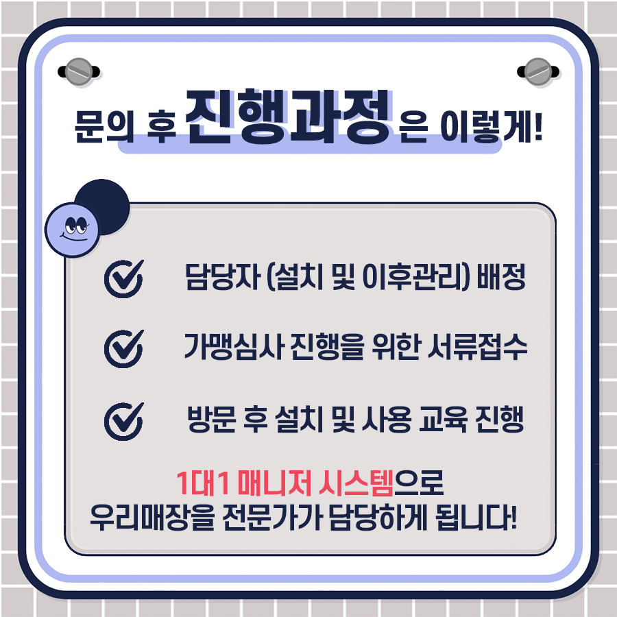 사람을 덜 쓰더라도 계산이나 결제 부문을 간소화 및 최소화 시킨다면 많은 이득을 보실 수 있습니다.